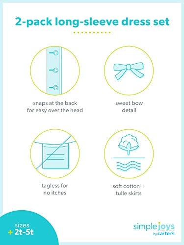 Simple Joys by Carter's Girls' Toddler 2-Pack Long-Sleeve Dress Set with Tulle, Pink/Gray, 4T