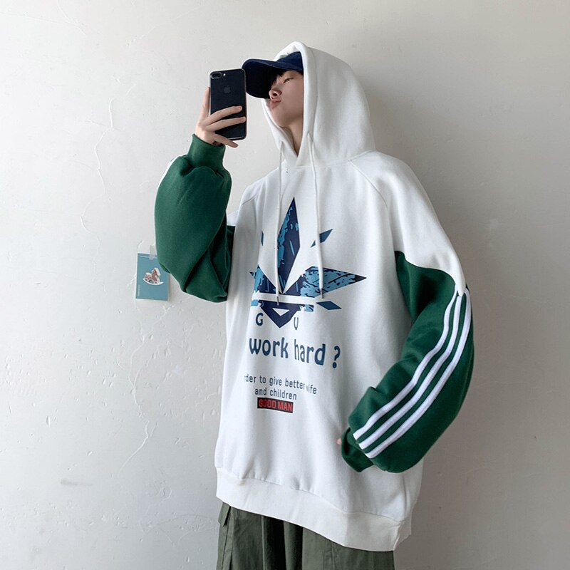 Single Road Men's Hoodies Men 2020 Winter Side Striped Oversized Sweatshirt Male Hip Hop Japanese Streetwear White Hoodie Men