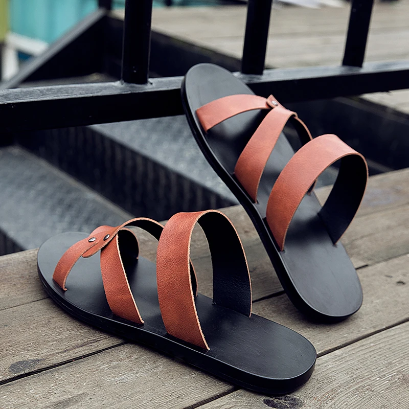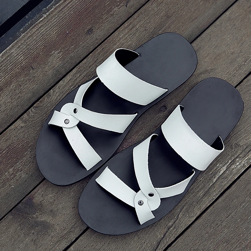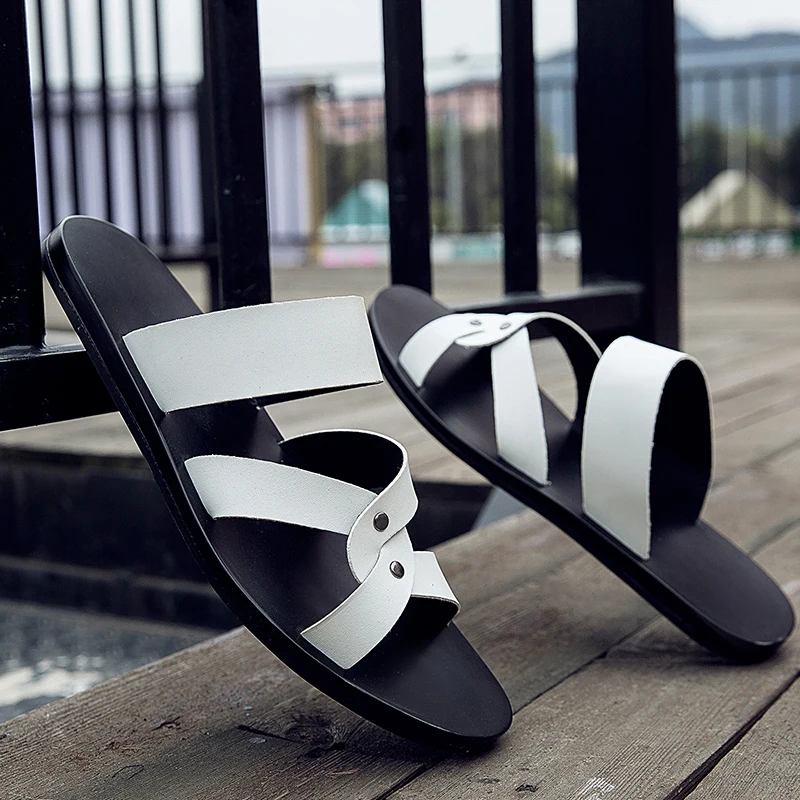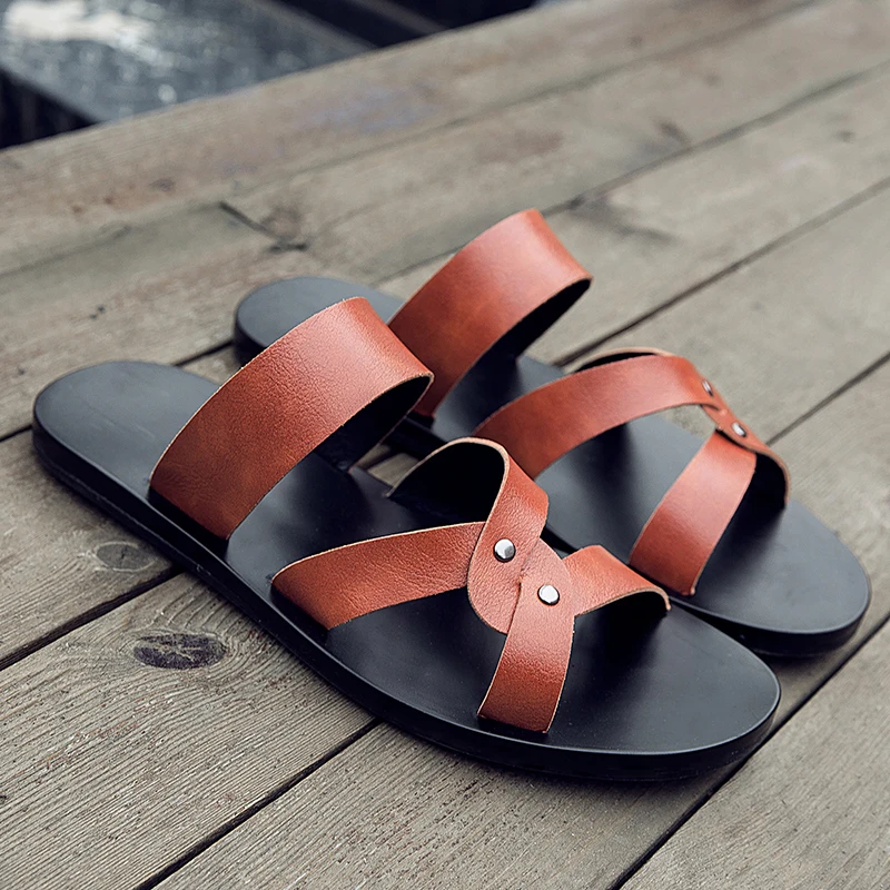 Summer Handmade Casual Beach Shoes One Word Men's Slippers |