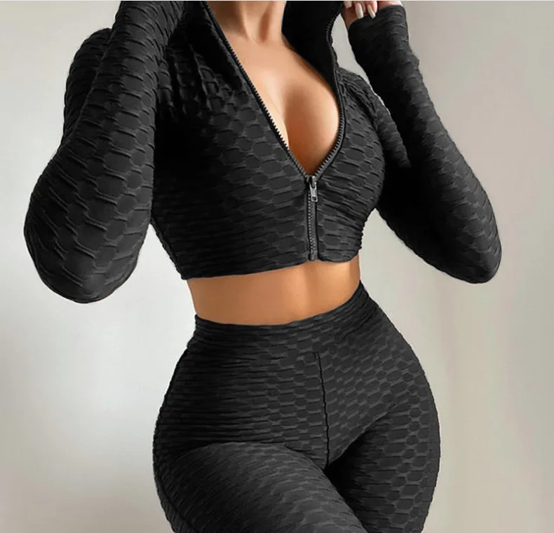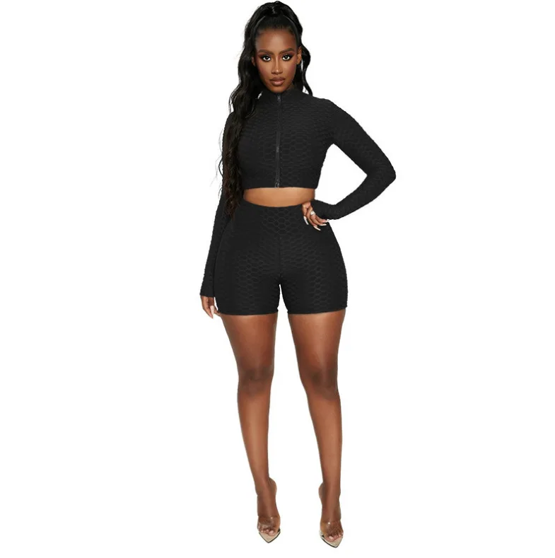 Summer New Women 2 Pieces Long Sleeve Zipper Sports Set Fitness Activer Wear Crop Top Shorts Yoga Set |