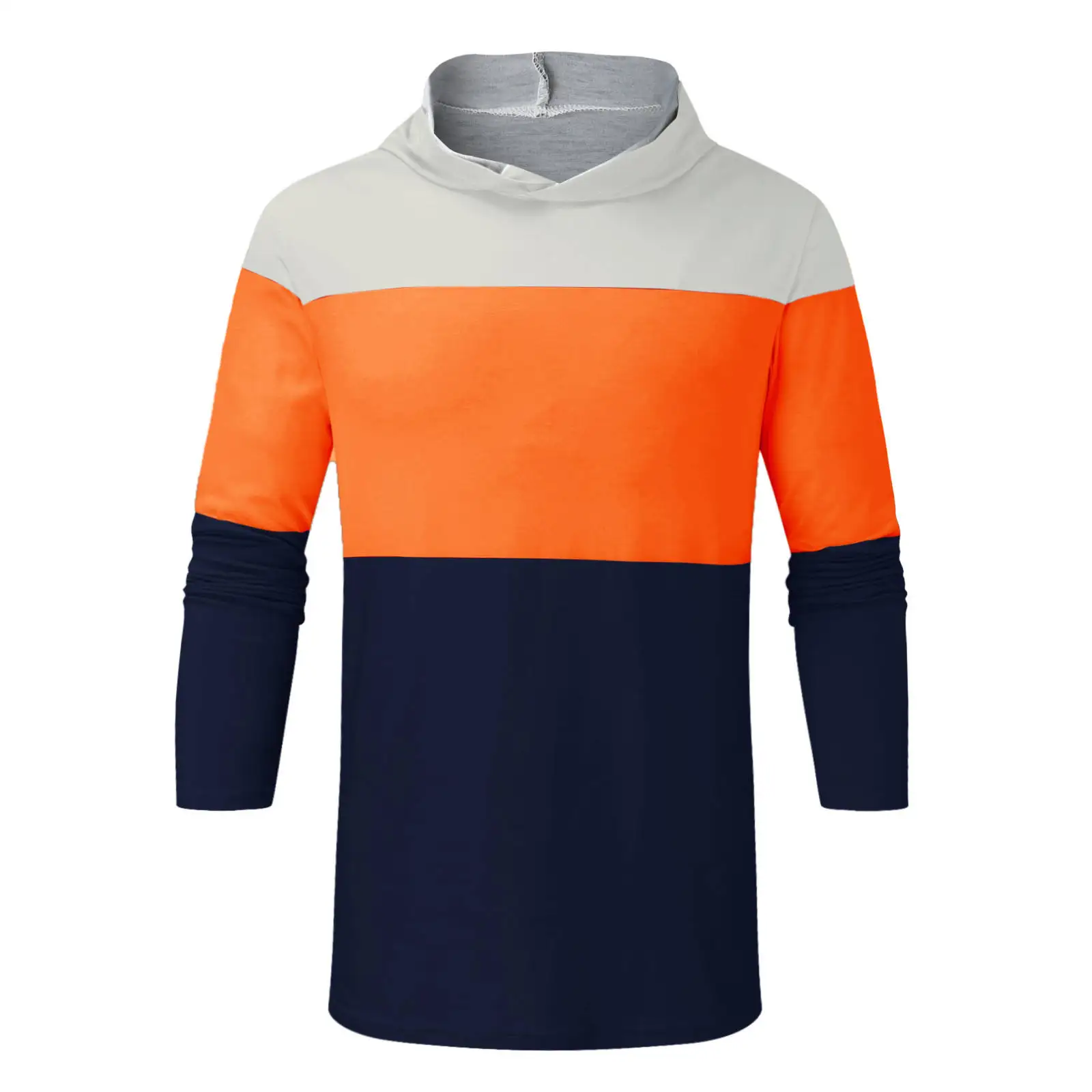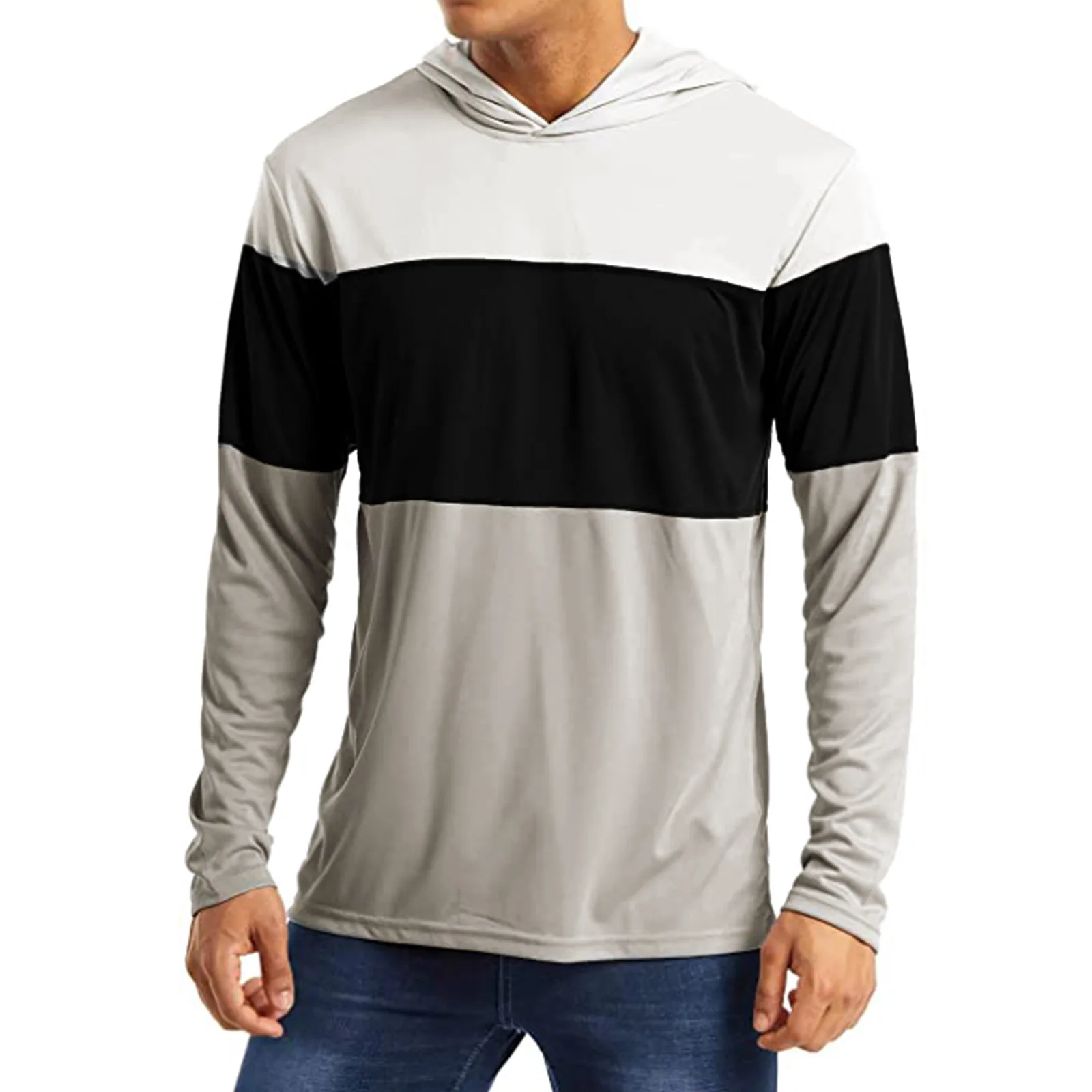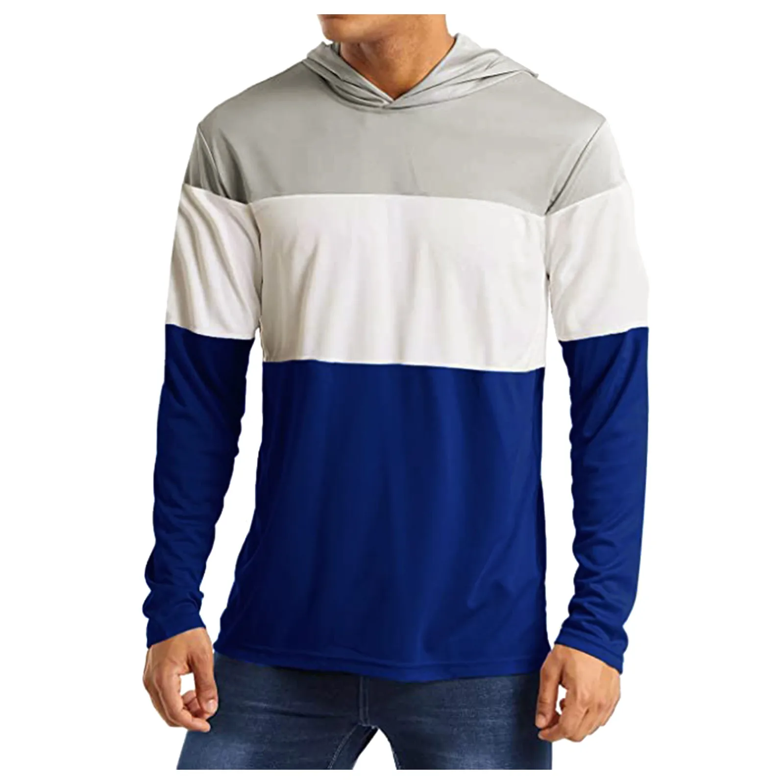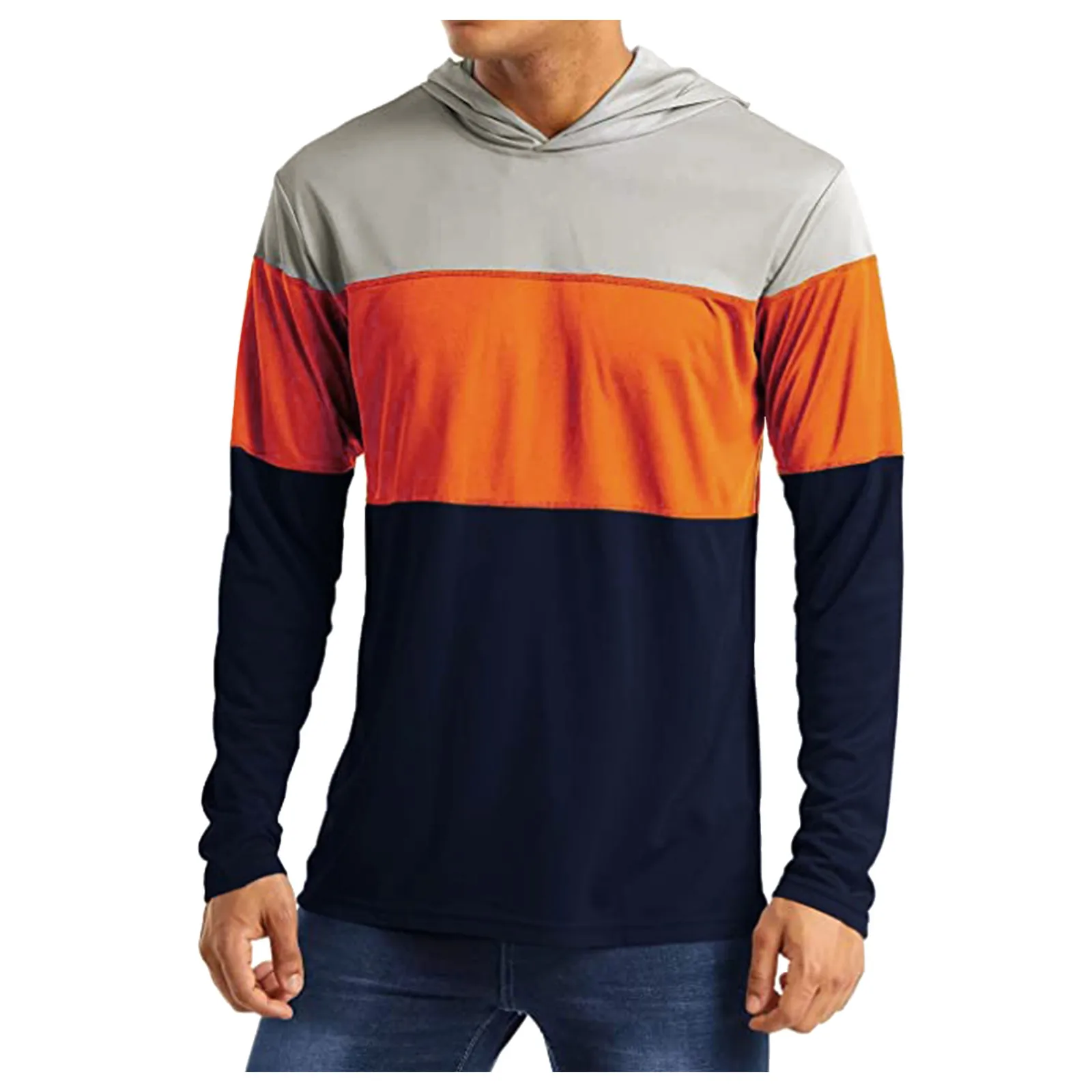 Sun Protection Men's Workout Casual Long Sleeve Color Block Sweatshirt Breathable Lightweight Sports Sweatshirt Hooded