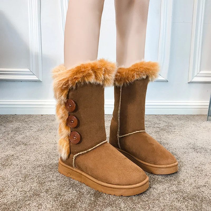 Superstarer Latest desirable winter fur snow boots for women warm non-slip button boots