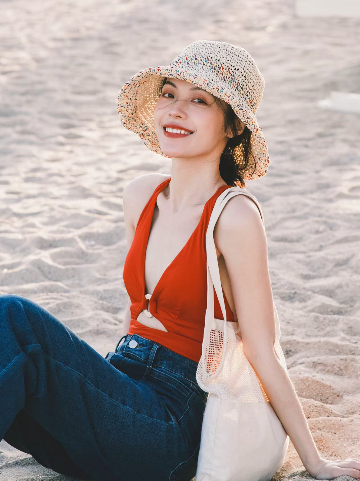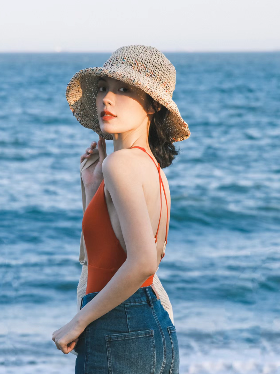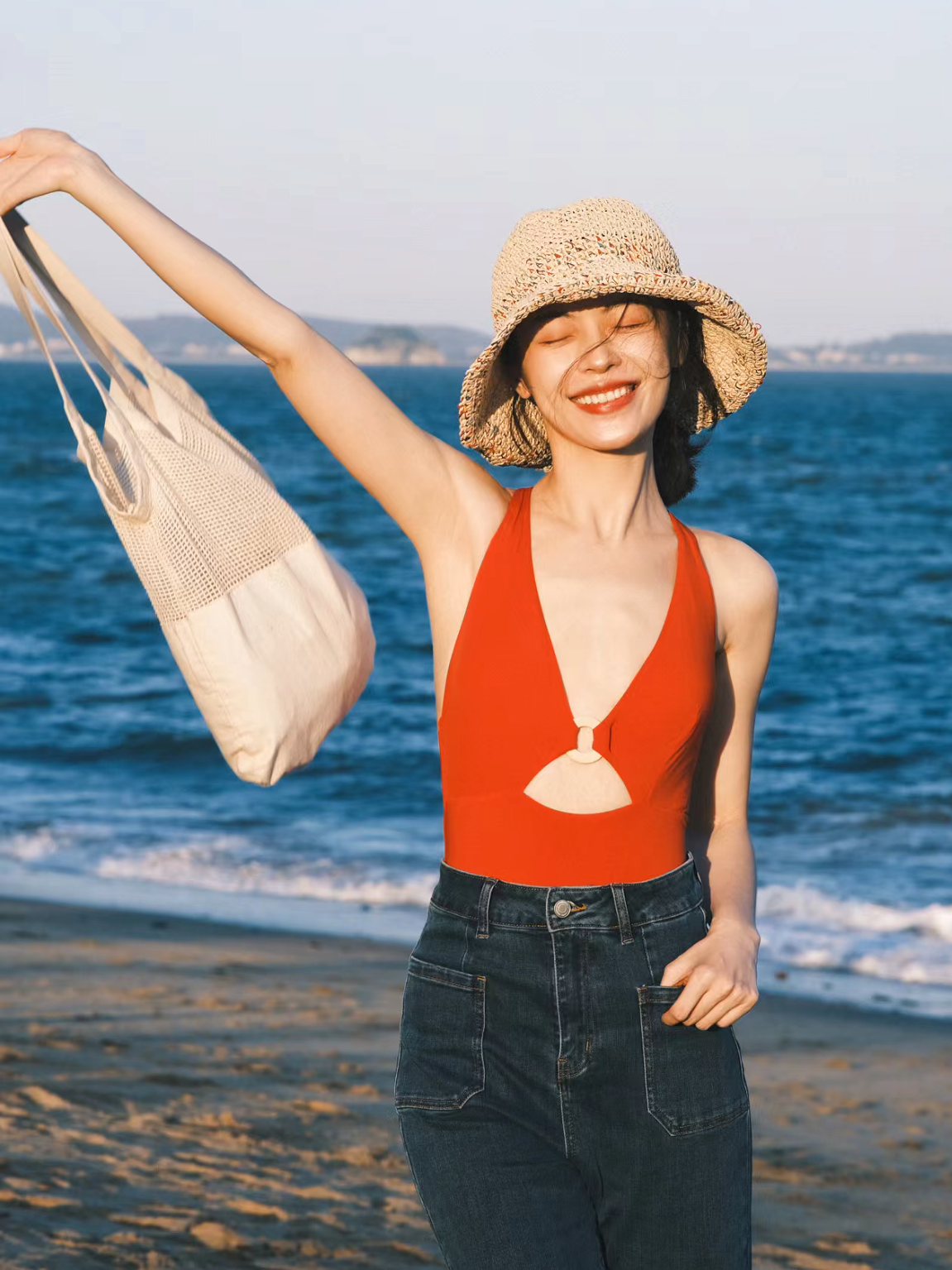 Swimsuit Women's Hot Spring Retro Hong Kong Style Sexy Red Triangle One-Piece Bikini Seaside Beach Vacation Swimsuit