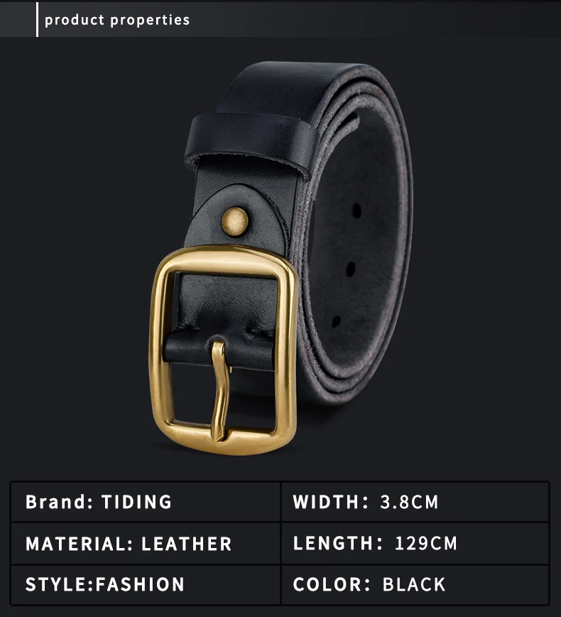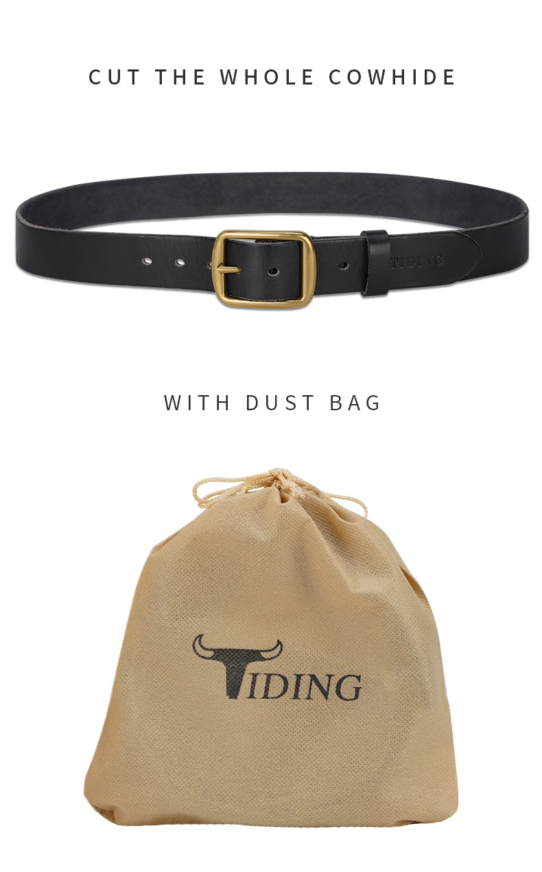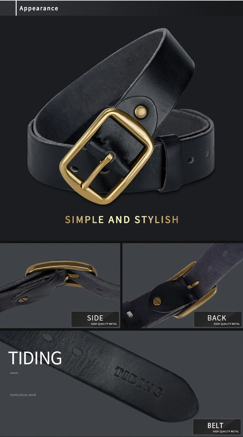 TIDING OEM Mens Copper Buckle Top Grain Real Cowhide Leather Belts
