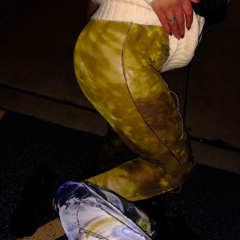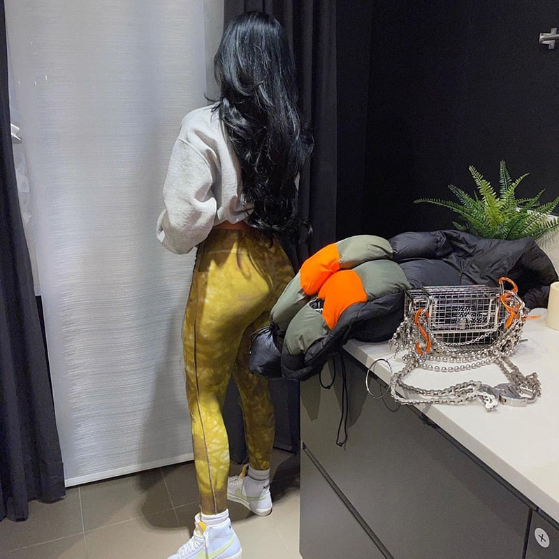 Tie Dye Print Sporty Skinny Leggings For Women High Waist Casual Wear Athleisure Pants Patchwork Slim Fashion Leggins