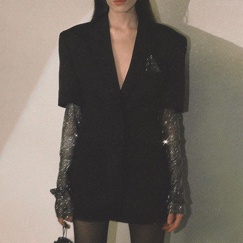 TWOTWINSTYLE Casual Patchwork Diamond Blazer For Women Notched Long Sleeve High Street Blazers Female Fashionable New Clothing