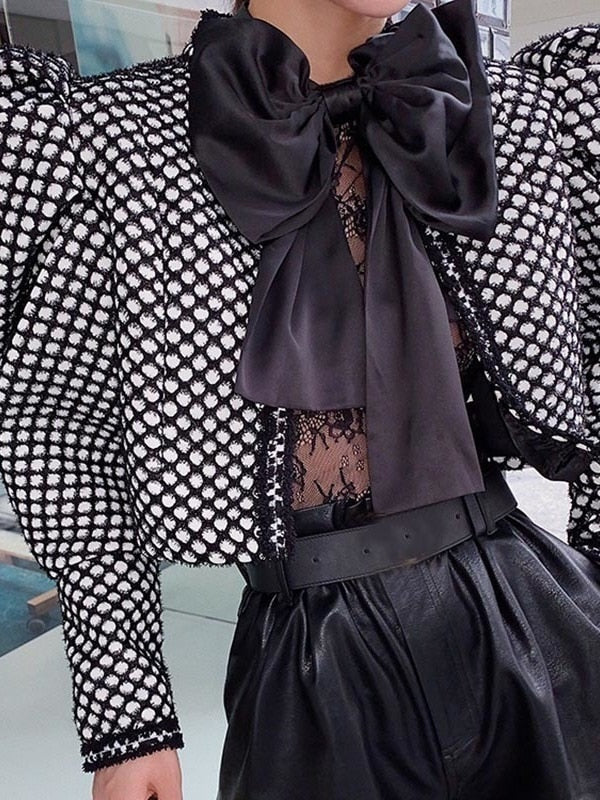 TWOTWINSTYLE Ruched Plaid Coat For Women O Neck Puff Sleeve Short Female Coat Streetwear Autumn Fashion New Clothing 2020