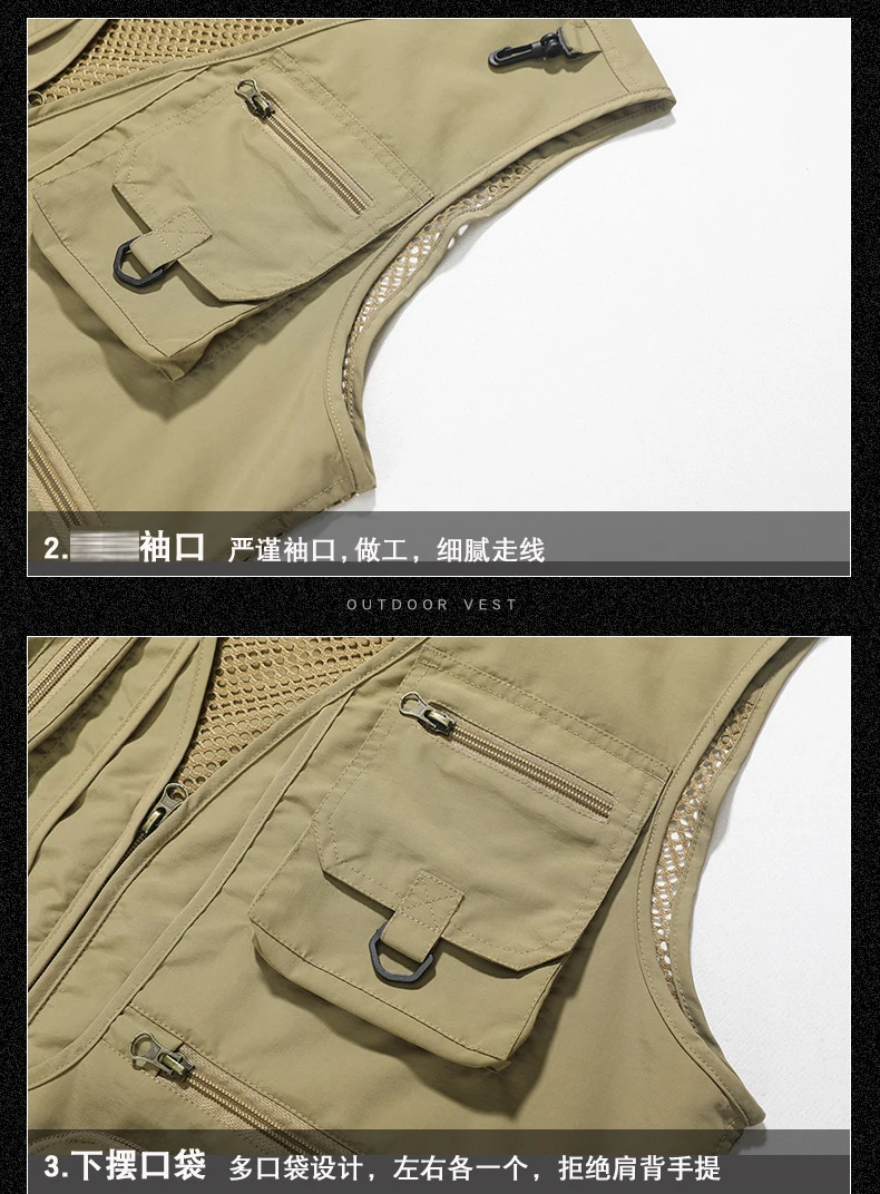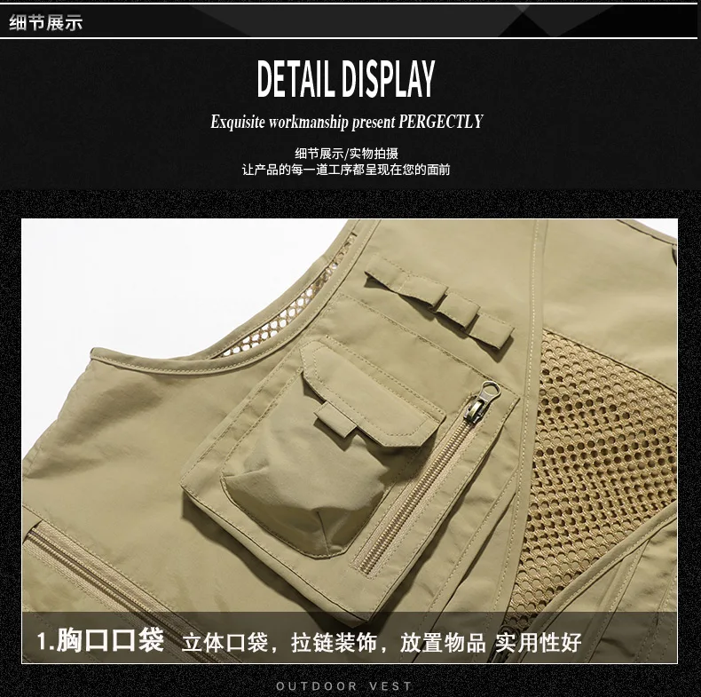 Classic solid color high quality multi-pocket functional vest is simple and practical, best choice for spring, summer and autumn.