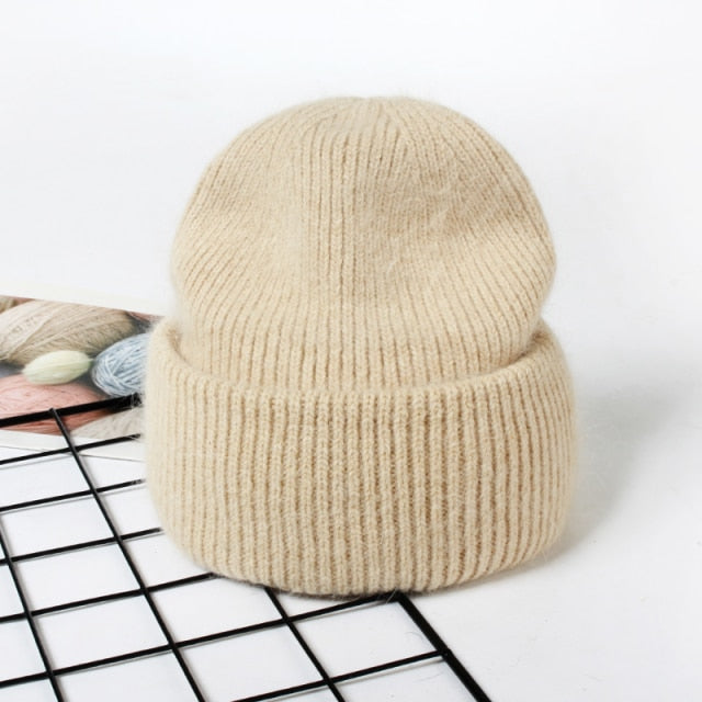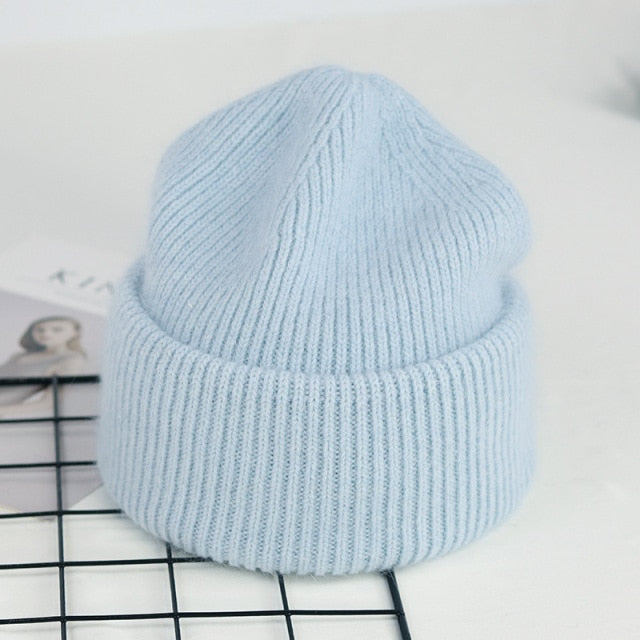 VISROVER 9 Colors Unisex Solid Color Real Rabbit Fur Beanies Winter Hat For Woman Knit Bonnet Acrylic Woman Autumn Warm Skullies