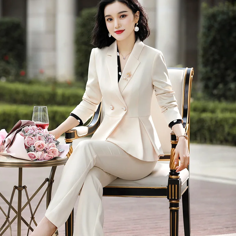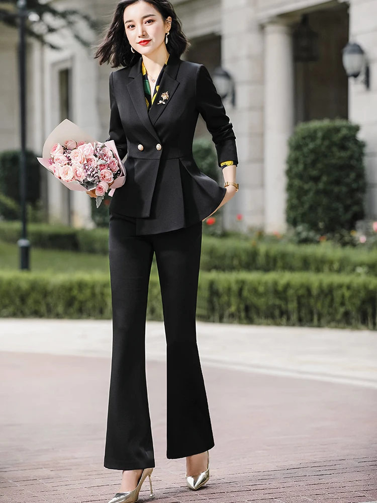 Wholesale 2 Piece Set Women Pant Suits Office Lady Work Wear Formal Female Asymmetrical Single Breasted Blazer with Flares Pant