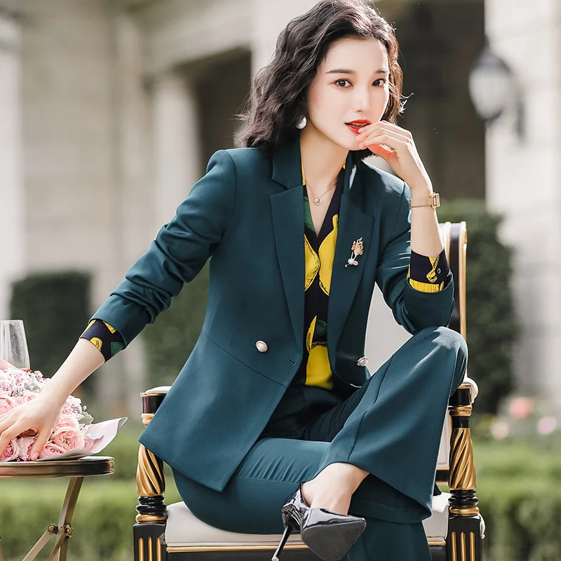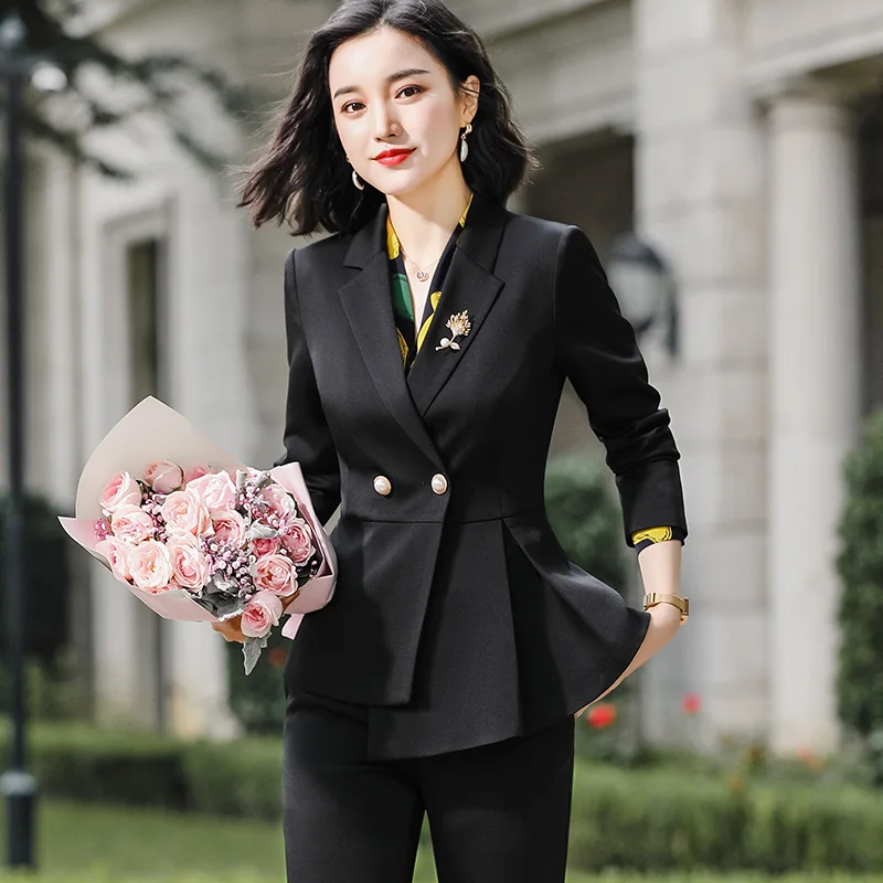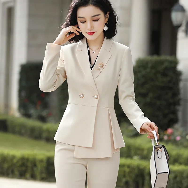 Wholesale Dropship 2 Piece Set Pant Suits Office Lady Work Wear Formal Asymmetrical single Breasted Blazer with Flares Pant