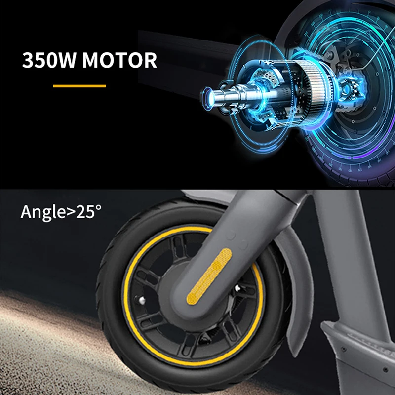 8.Brushless 350w rated power motor,peak about 500w,max climbing about 25 degrees.