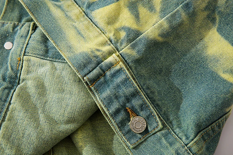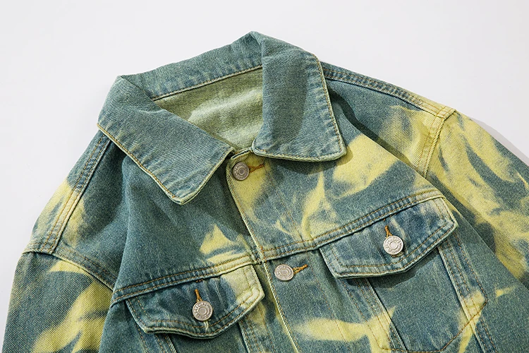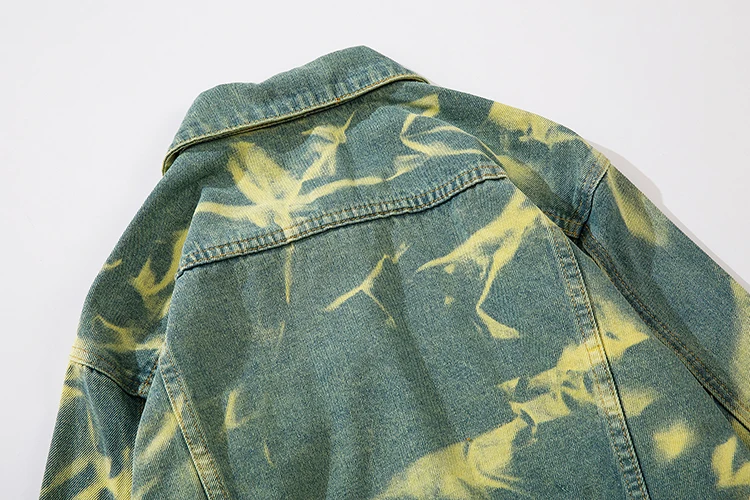wholesale men cheap jackets print mens green tie dye denim jacket loose casual sports jacket mens