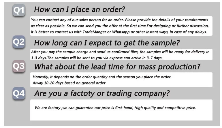 3)Stable long-term cooperative relationship! Our company philosophy is "sustainable cooperation, professional development", and we suggest good long-term cooperative relations with customers. We will try our best to meet the requirements of customers.
