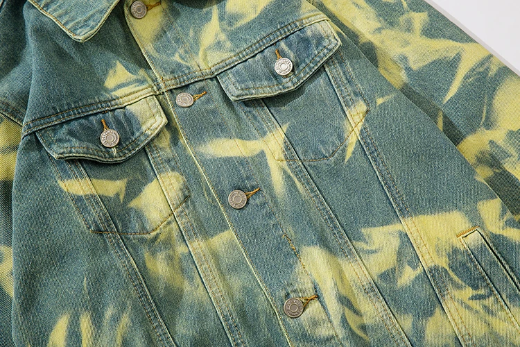 wholesale men cheap jackets print mens green tie dye denim jacket loose casual sports jacket mens |