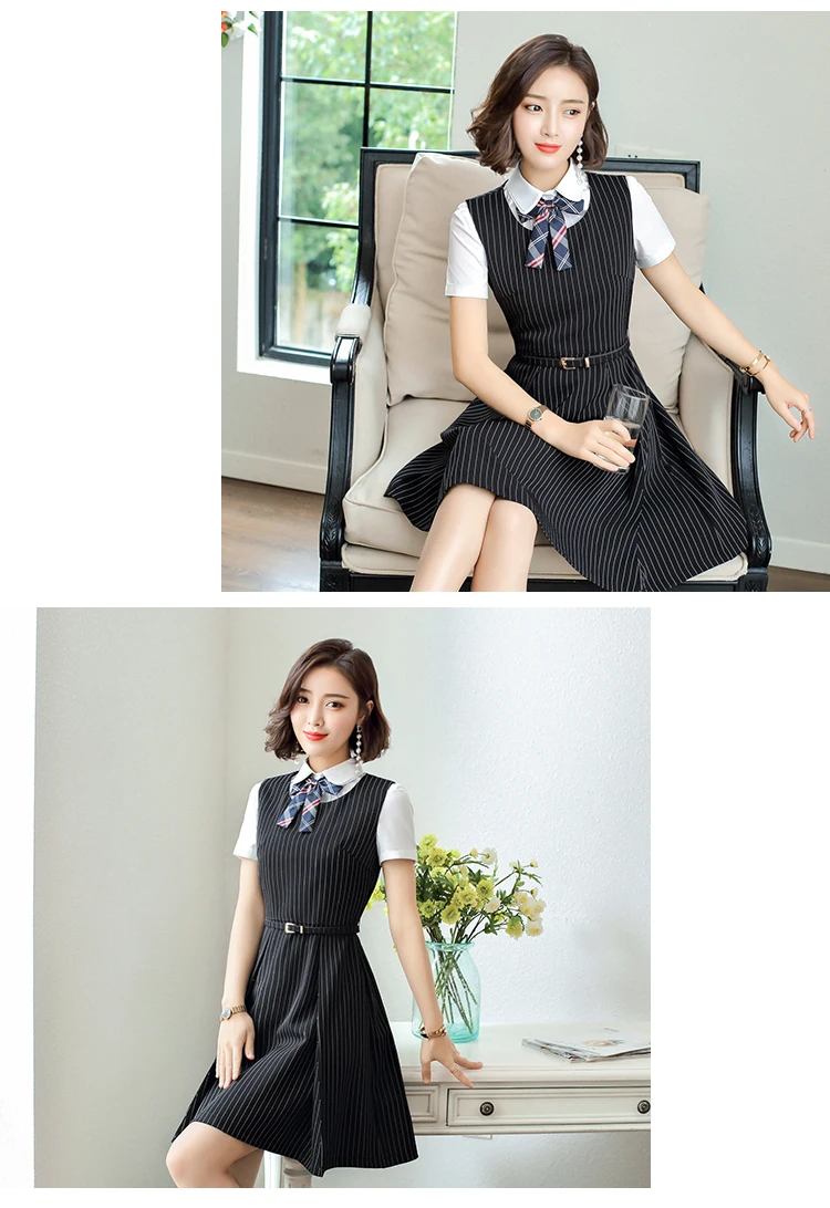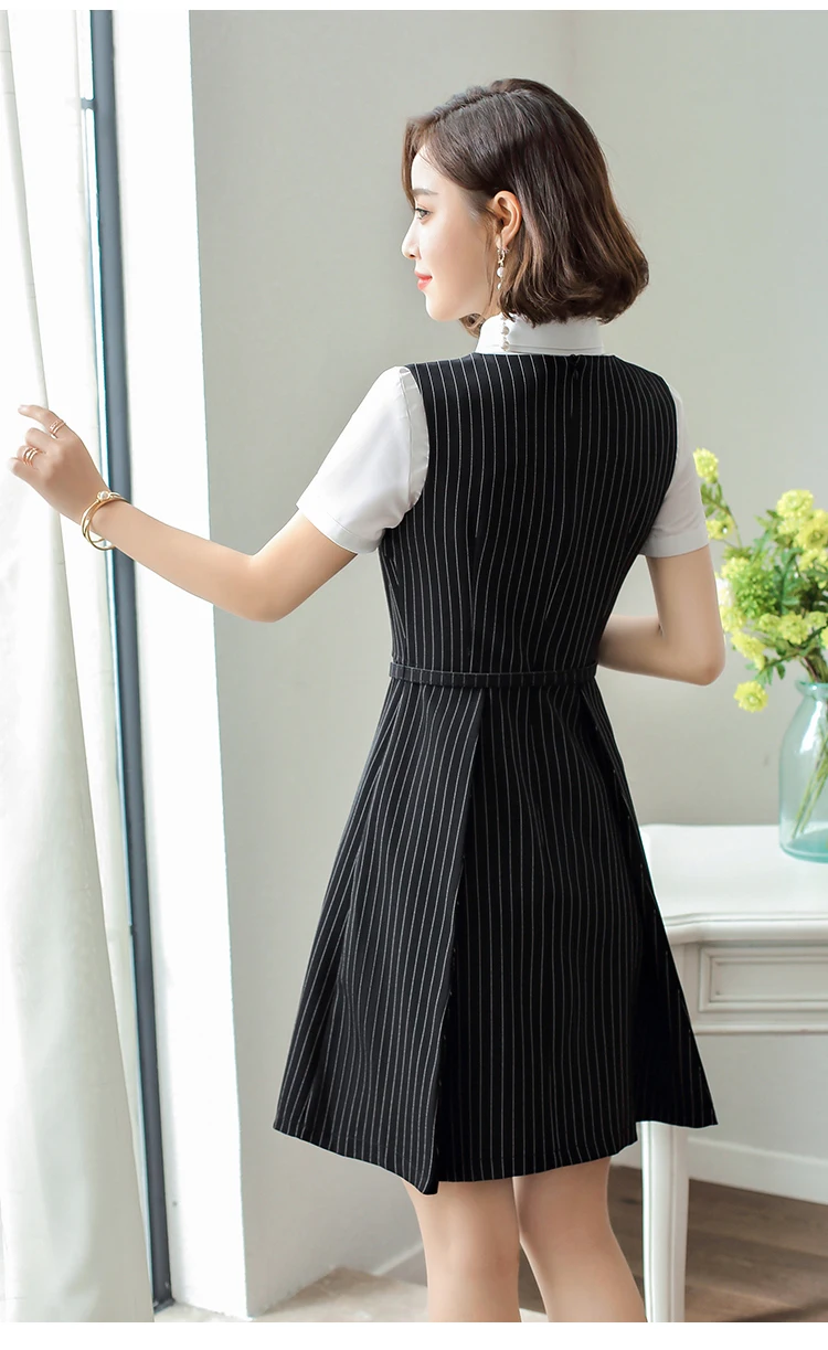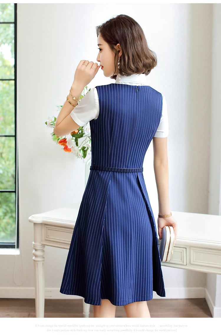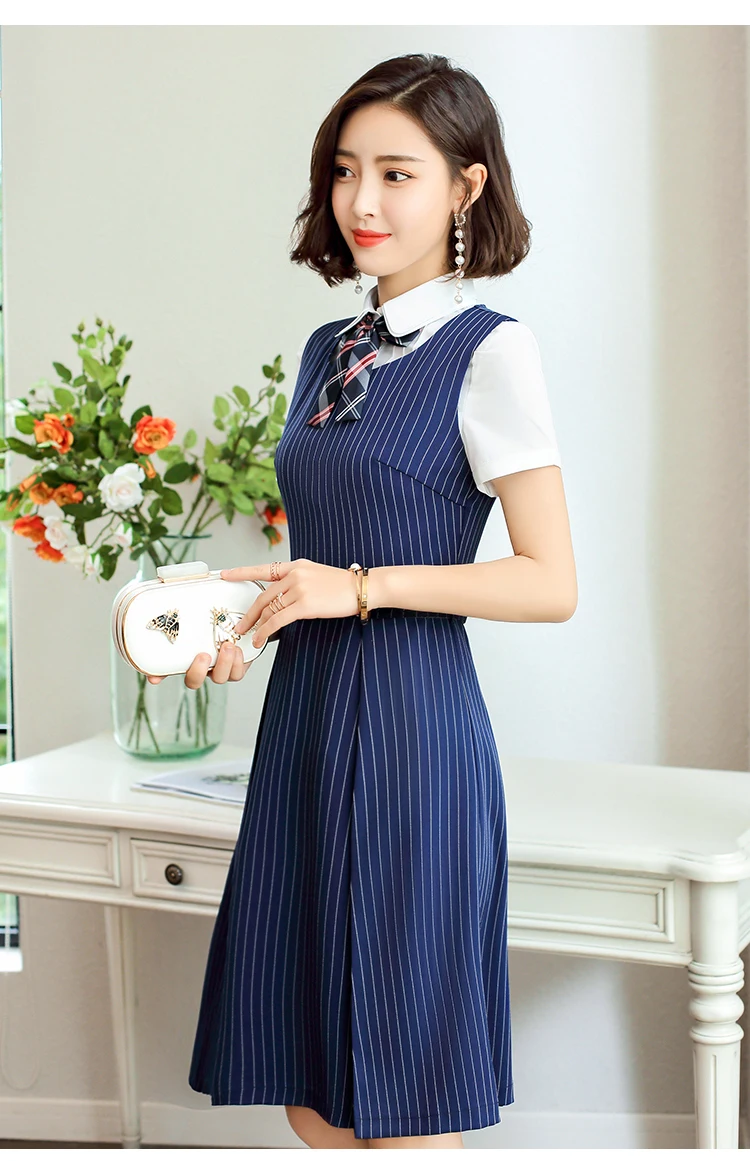 Wholesale Women Sleeveless Pleated Dress Dealers o-neck Blue Slim Office Lady Work Wear Teacher JK Uniform With Lining