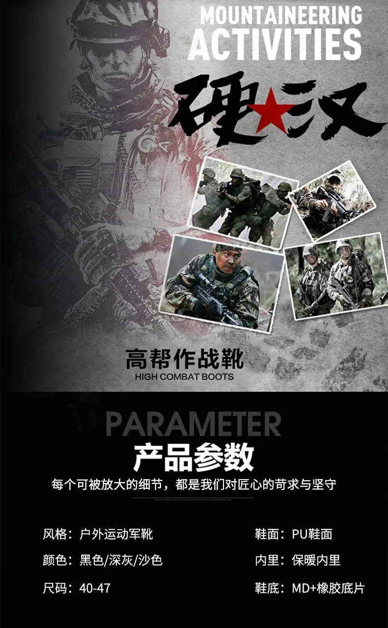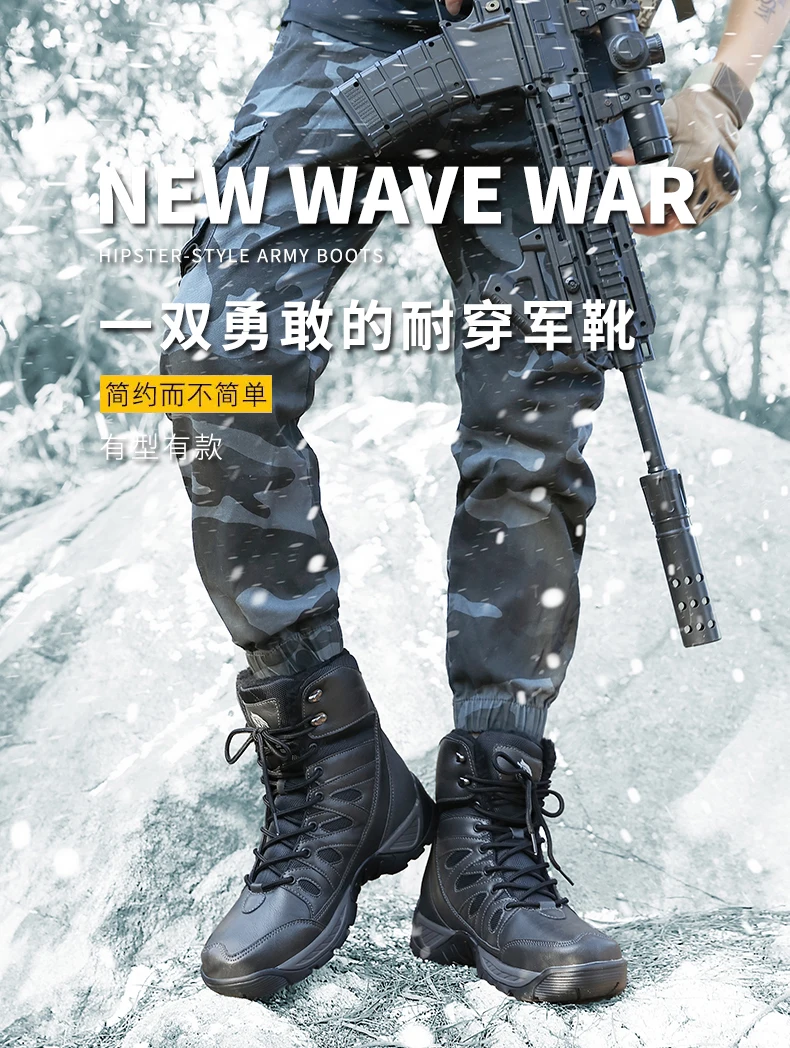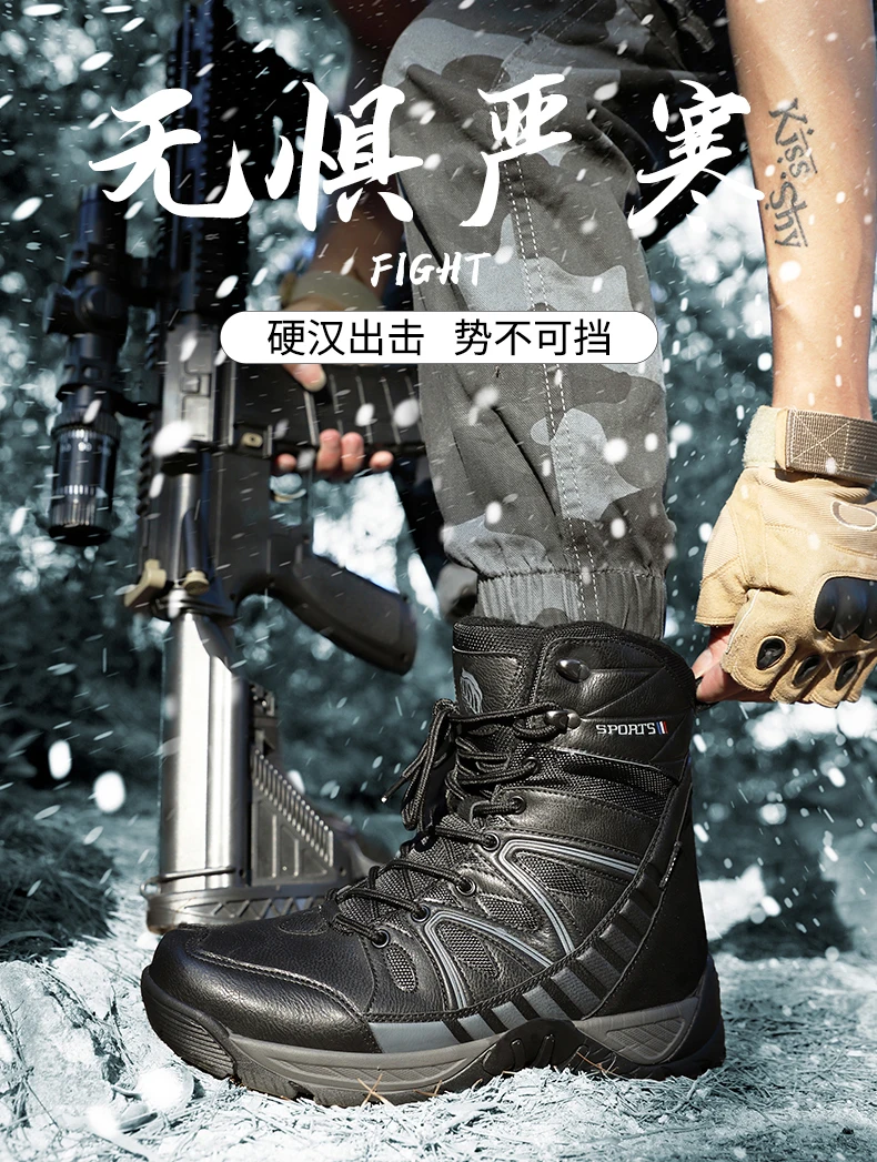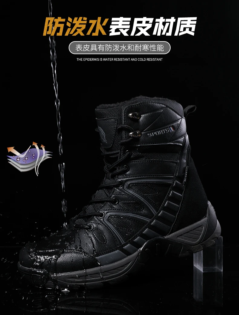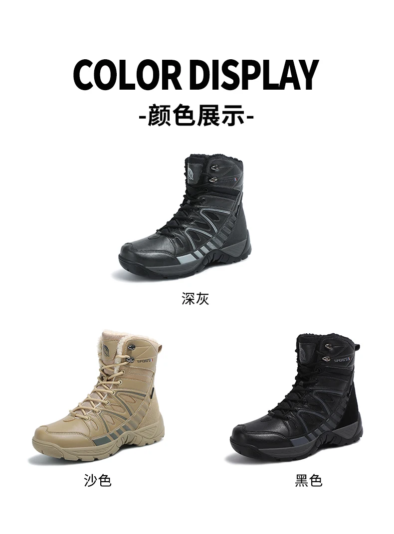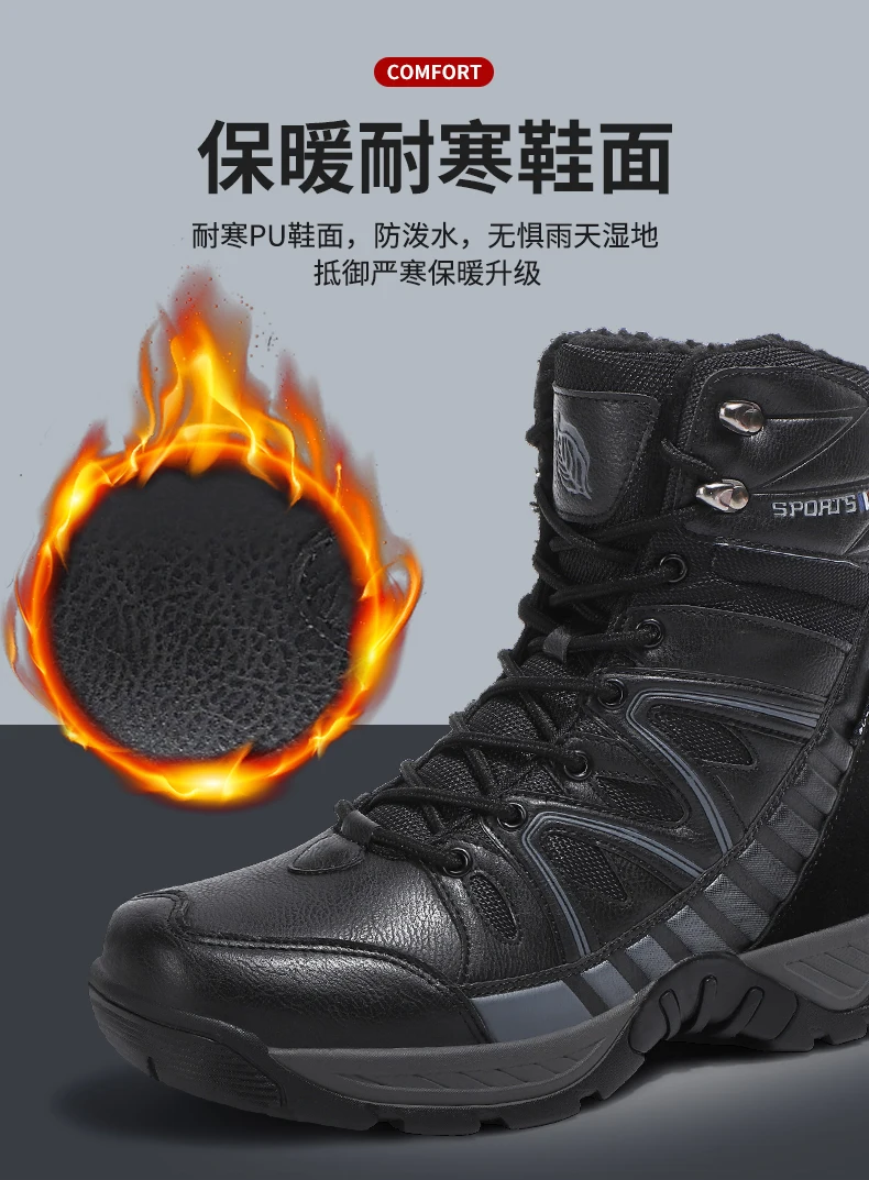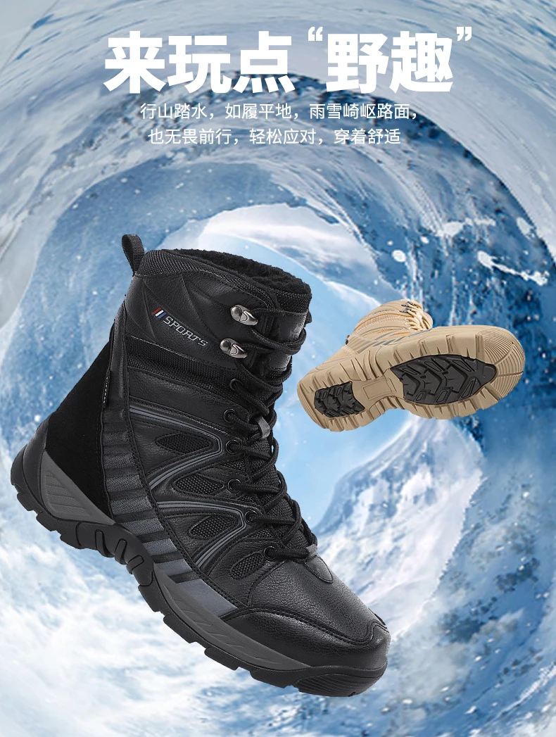 Winter outdoor men's hiking shoes plus velvet warm men's snow boots