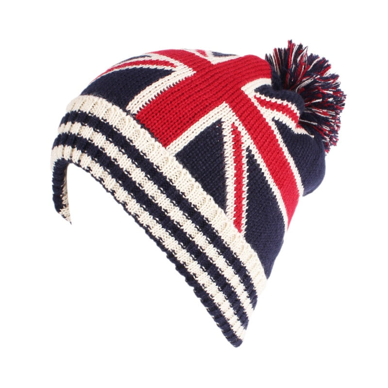 Winter Vintage Stars Stripe Knit USA Flag Beanie Skull Ski Pom Pom Hat Cap wool winter warm knitted caps and hats