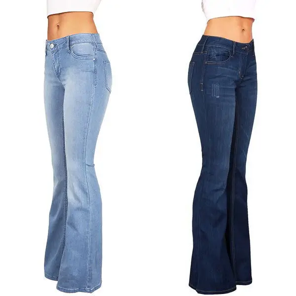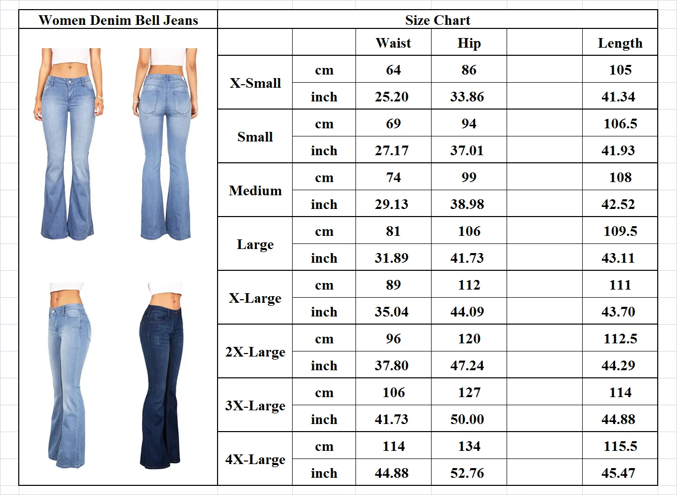 Women Flare Jeans Bell Bottom Denim Pants Cute Plain Plus Size Bell Jeans With Pockets Size(S, M, L, XL, 2XL, 3XL, 4XL) |