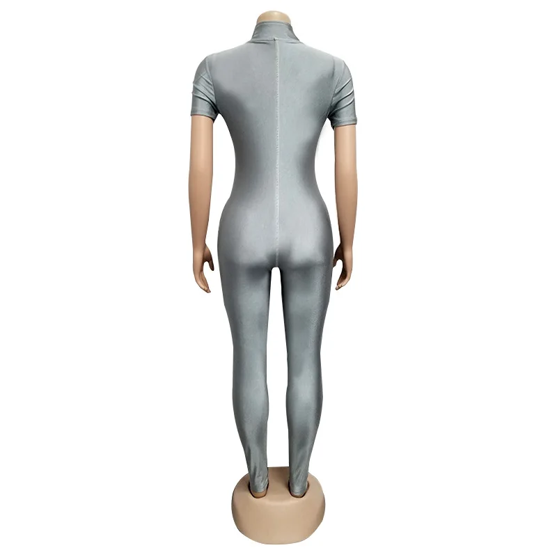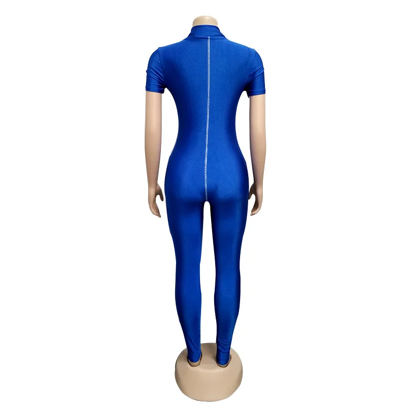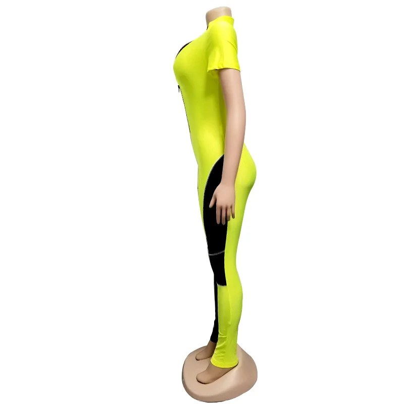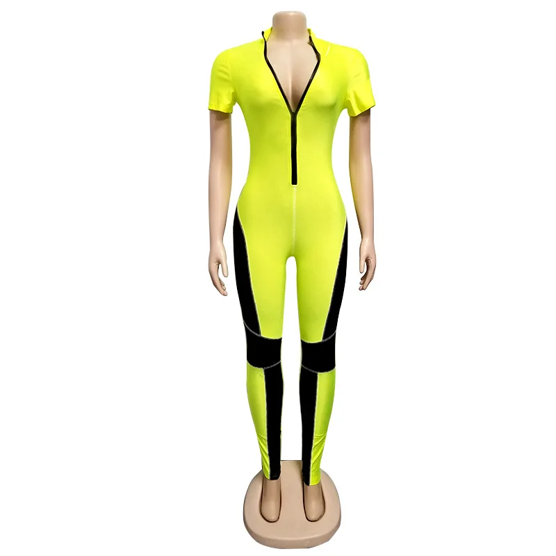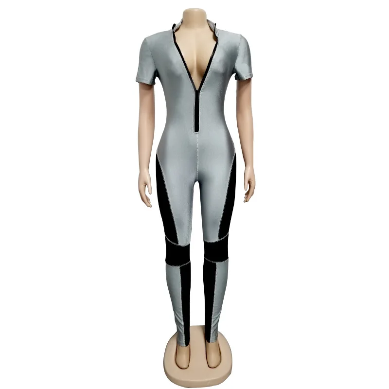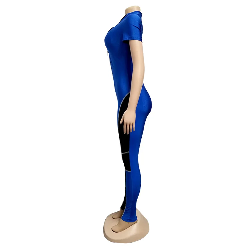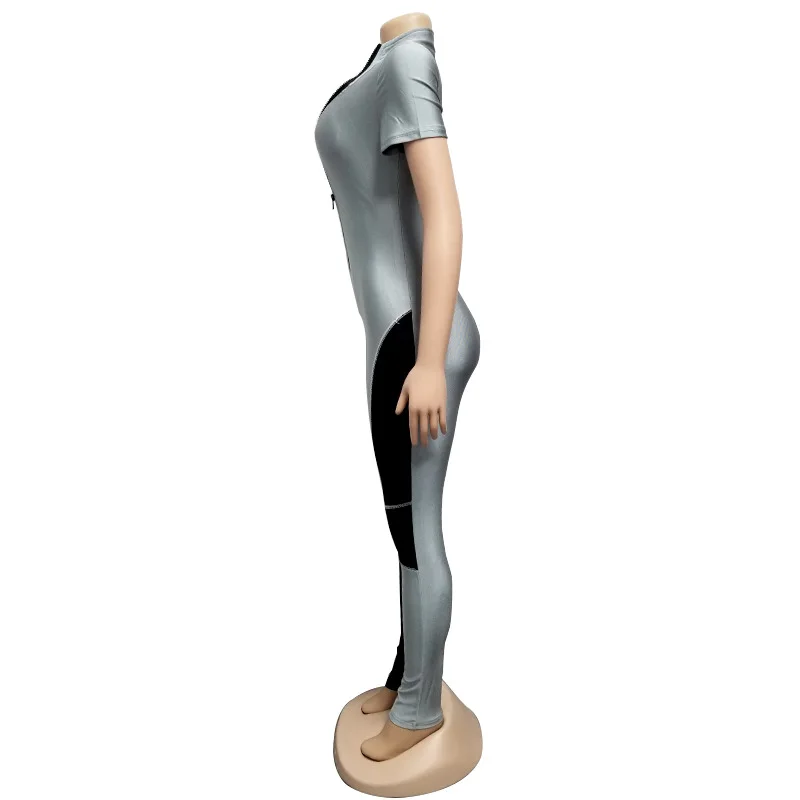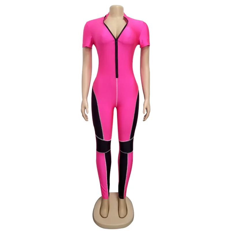 Women Sportswear Zipper Design Patchwork Plus Size One Piece Jumpsuit