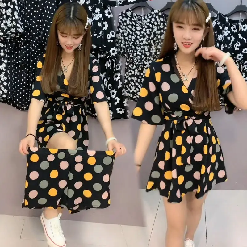 women's plus size dress & skirts summer two piece skirt set Chiffon Short sleeve dress Europe and America summer shorts leisure