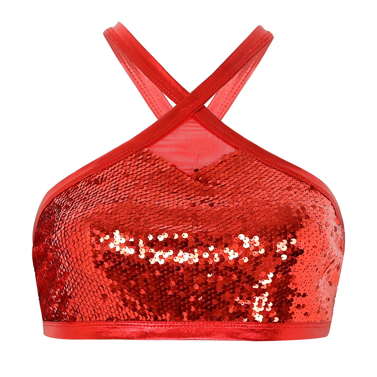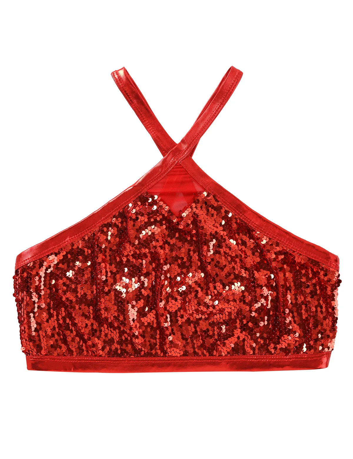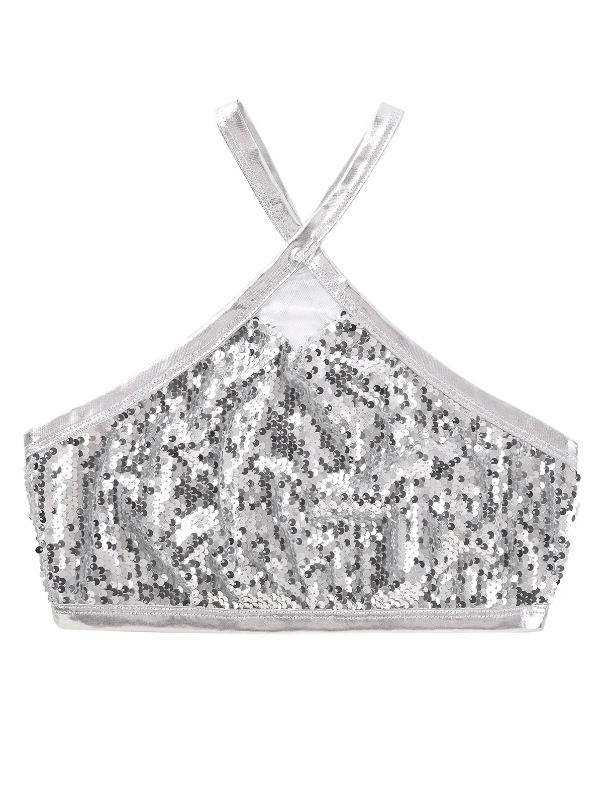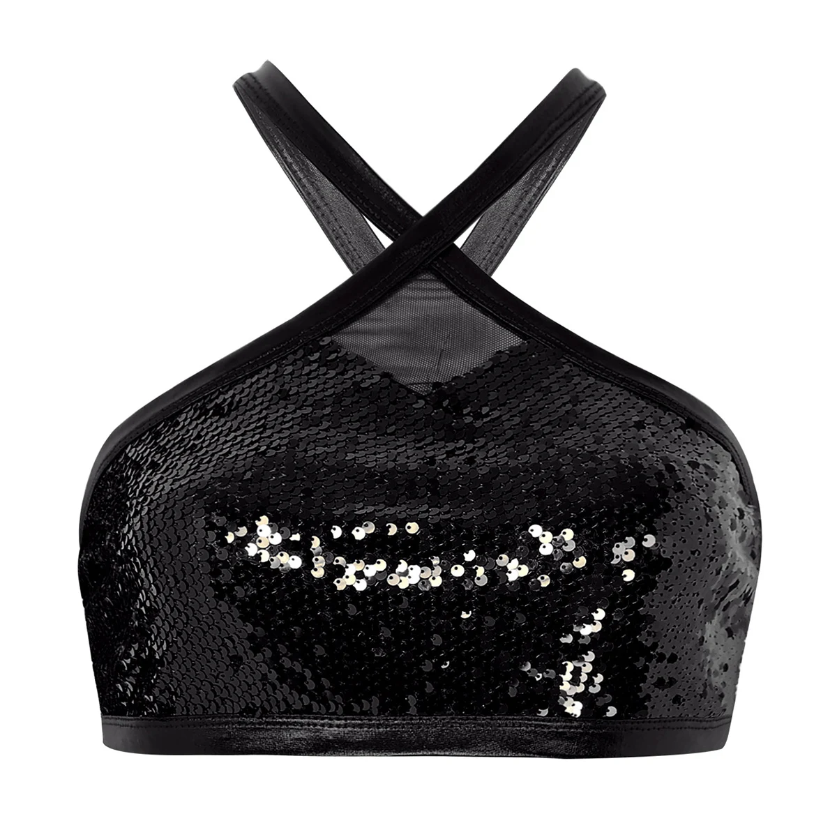 Women's Sparkly Sequins Bra Vest Crop Tops Sexy Halter Neck Sleeveless Back Cross Dances Clubwear Tank Top