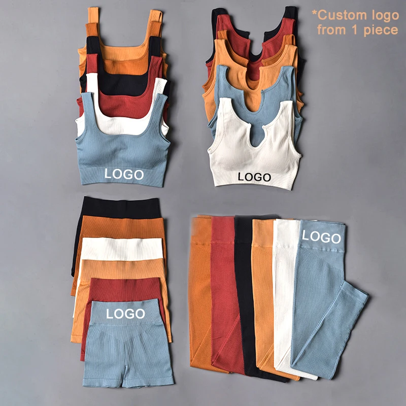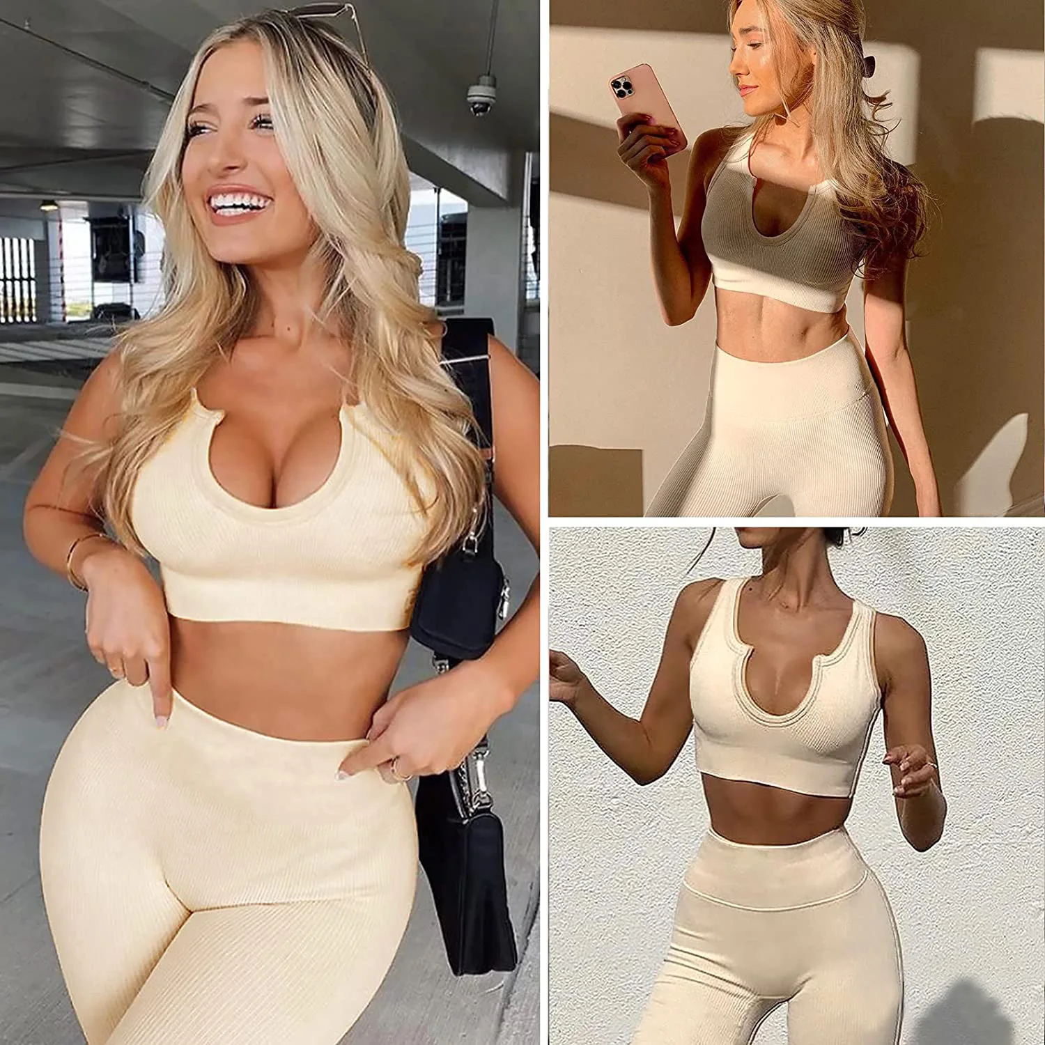 Women's Sportswear Yoga Set Workout Clothes Athletic Wear Sports Gym Legging Seamless Fitness Bra Crop Top Long Sleeve Yoga Suit