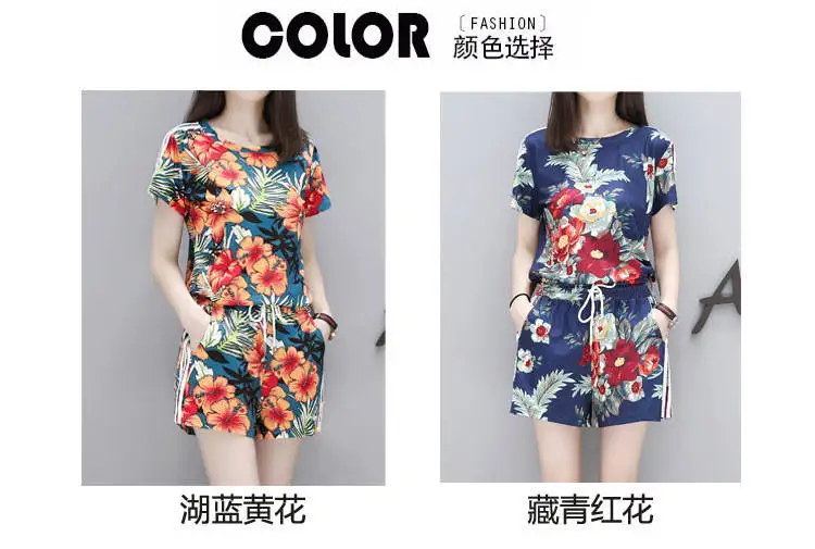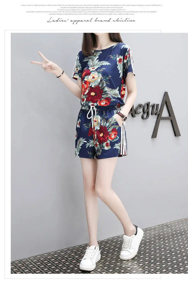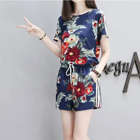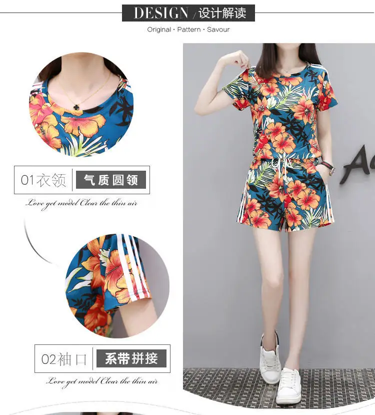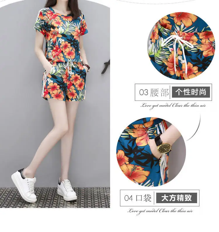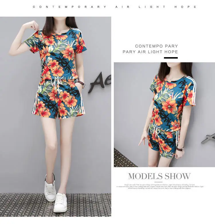 Women's Summer 2021 Women's Casual Two-Piece Set Fashion Print Shorts Short Sleeve Pullover and Sportswear Jogging Wear Casual W