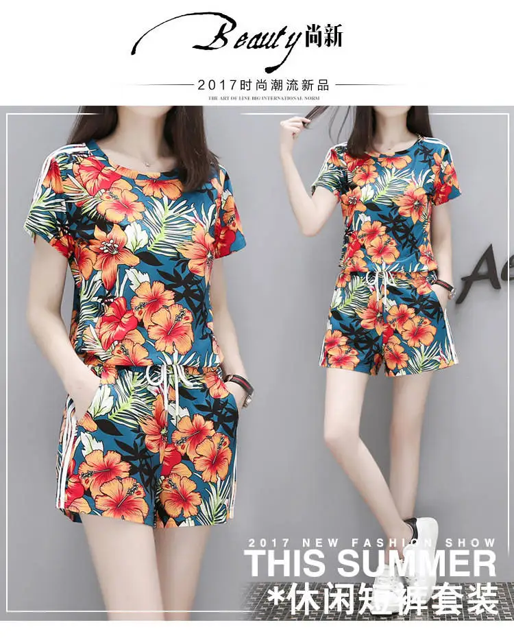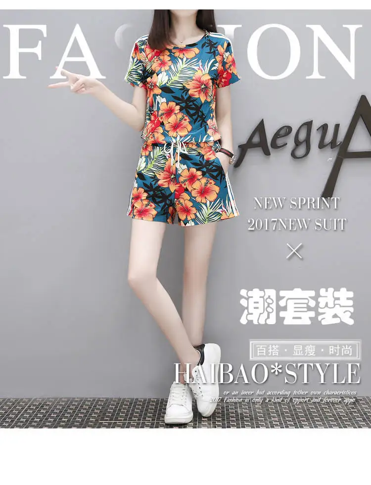 Women's Summer 2021 Women's Casual Two-Piece Set Fashion Print Shorts Short Sleeve Pullover and Sportswear Jogging Wear Casual Wear  |